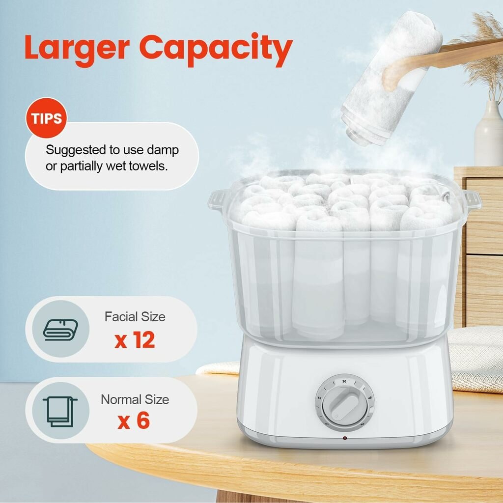 The steam function sets this model apart from standard warmers. Not only does it heat faster, but the steam helps sanitize towels and remove odors. The digital controls make it easy to set your preferred time and temperature with precision.