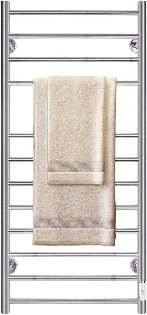 The VIVOHOME Electric model offers excellent value in the freestanding category. This sturdy rack features eight bars that heat evenly and can hold multiple towels at once. The freestanding design requires no installation, just plug it in and turn it on.