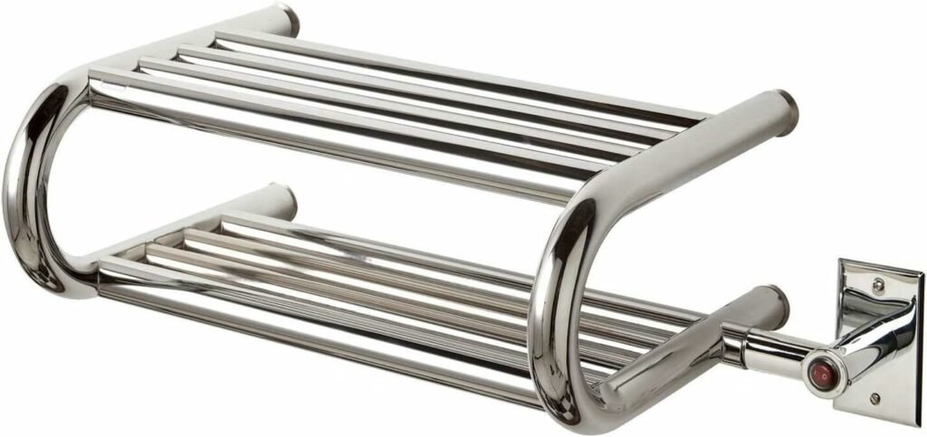 The polished chrome finish gives this warmer a mirror-like shine that enhances any bathroom’s appearance. During our tests, the WDIA12M reached optimal temperature within 20 minutes and maintained consistent heat across all bars. The unit comes pre-filled and sealed, making installation simpler than other hydronic models.